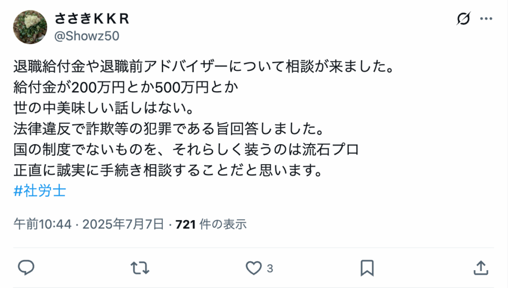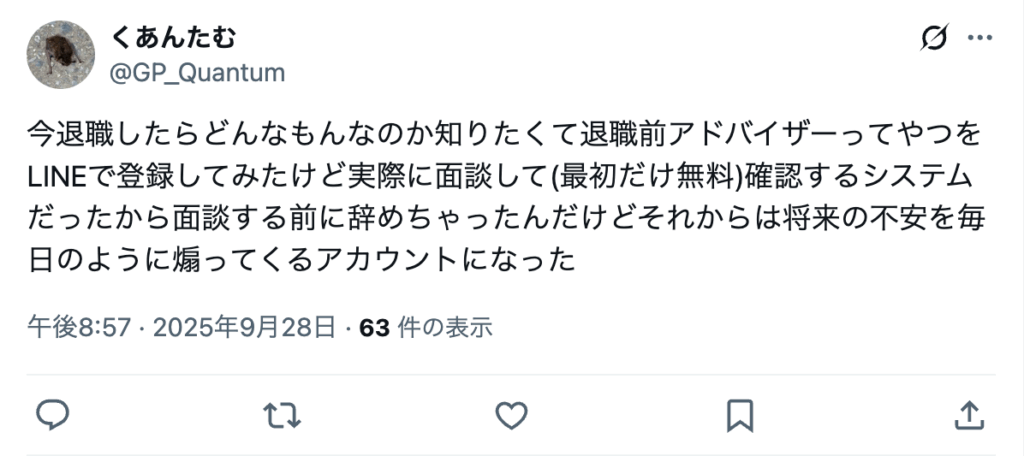 ネット上には、退職前アドバイザーに対して疑念や批判を投げかける声も数多く投稿されています。