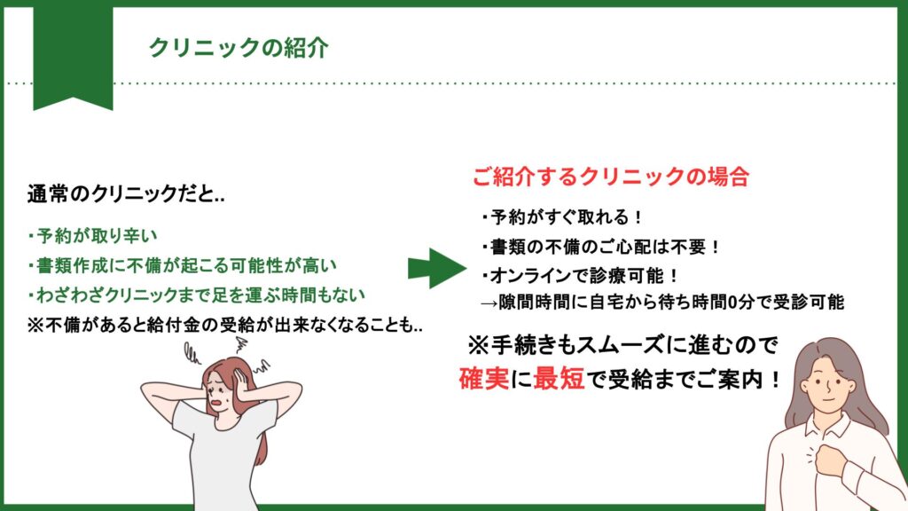 給付金を受け取るまでの手続きは決して簡単ではありませんが、プロのサポートを受けながら進めれば、面倒な書類作成や確認作業をほとんど自分で行う必要がありません。