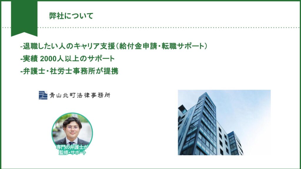 退職アシスタントの大きな強みは、社会保険や雇用保険のプロフェッショナルである社会保険労務士や弁護士が監修していることです。